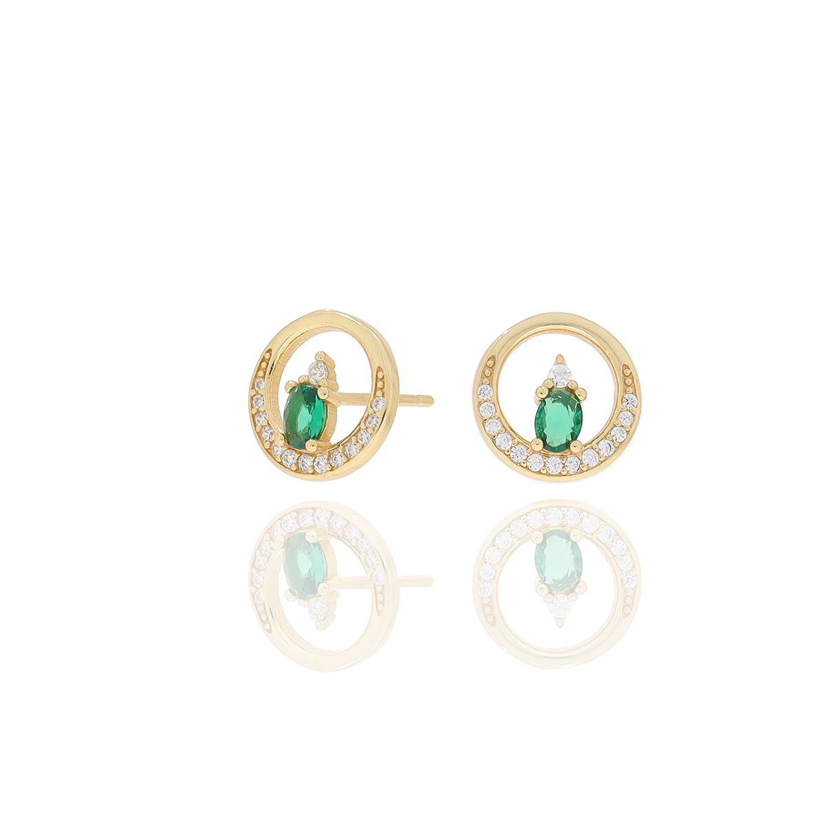 Kolczyki pozłacane 925 z motywem koła – zielona i biała cyrkonia