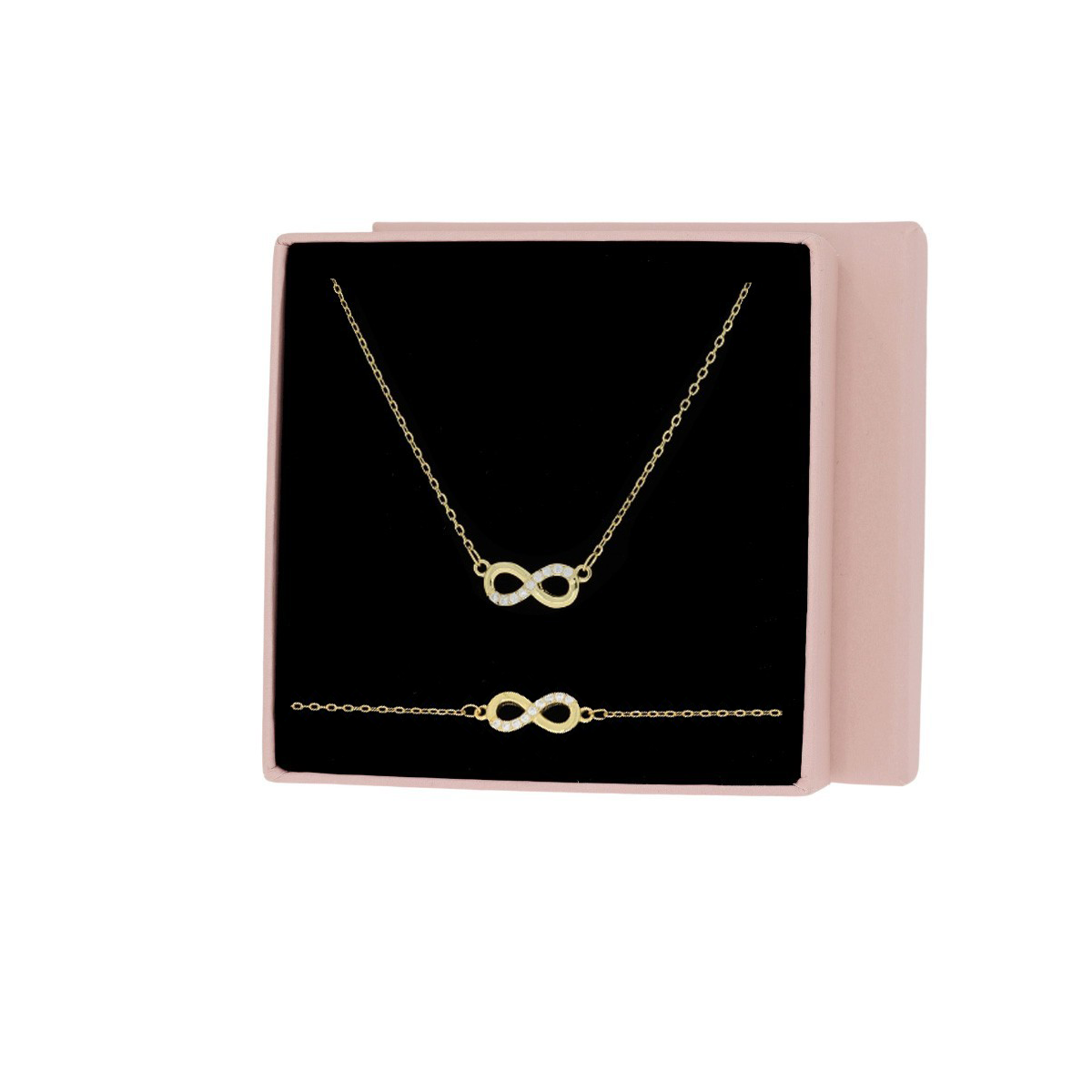 Komplet biżuterii pozłacanej 925 – naszyjnik + bransoletka - nieskończoność z cyrkoniami