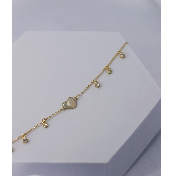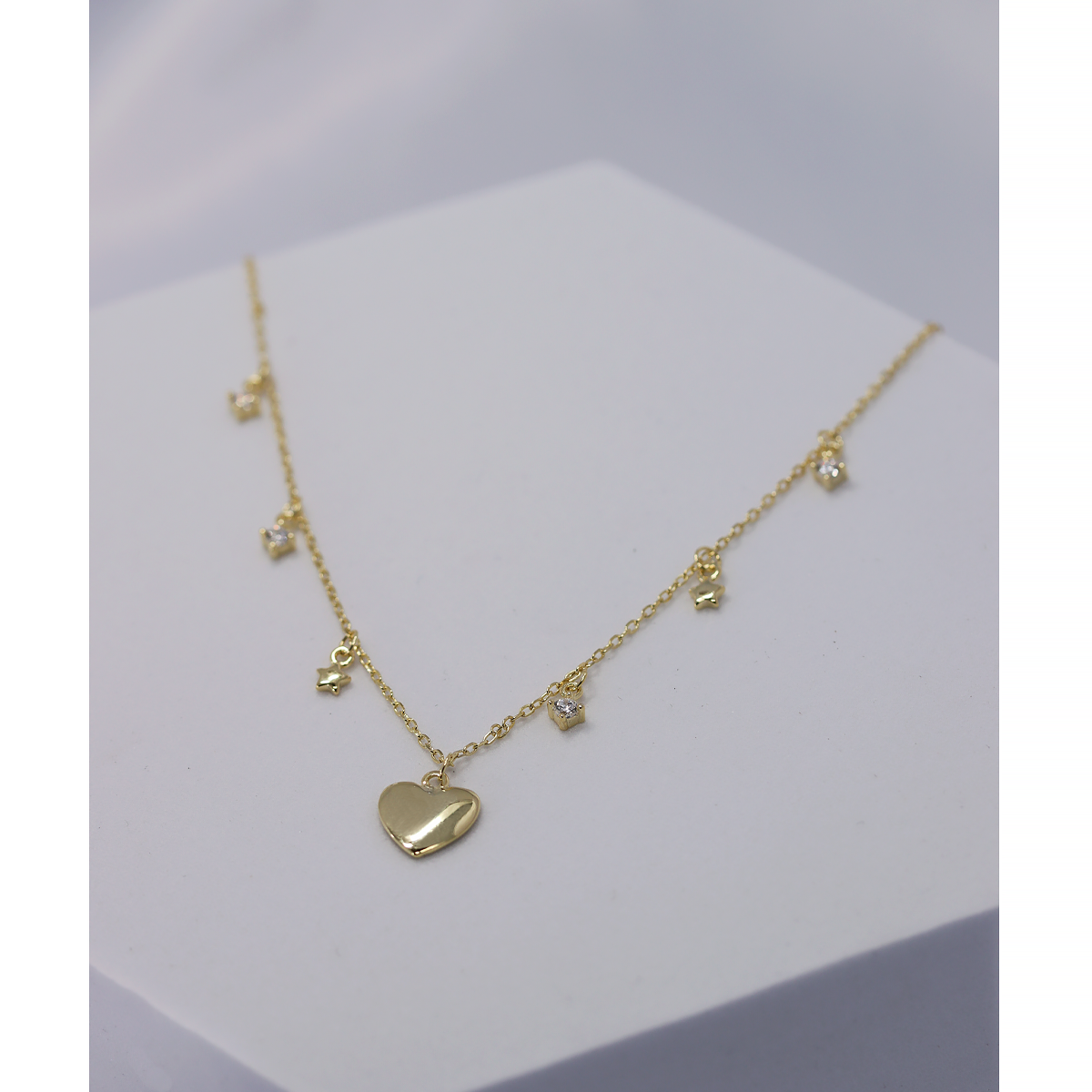 Komplet biżuterii pozłacanej 925 – naszyjnik + bransoletka - serce z gwiazdkami i cyrkoniami