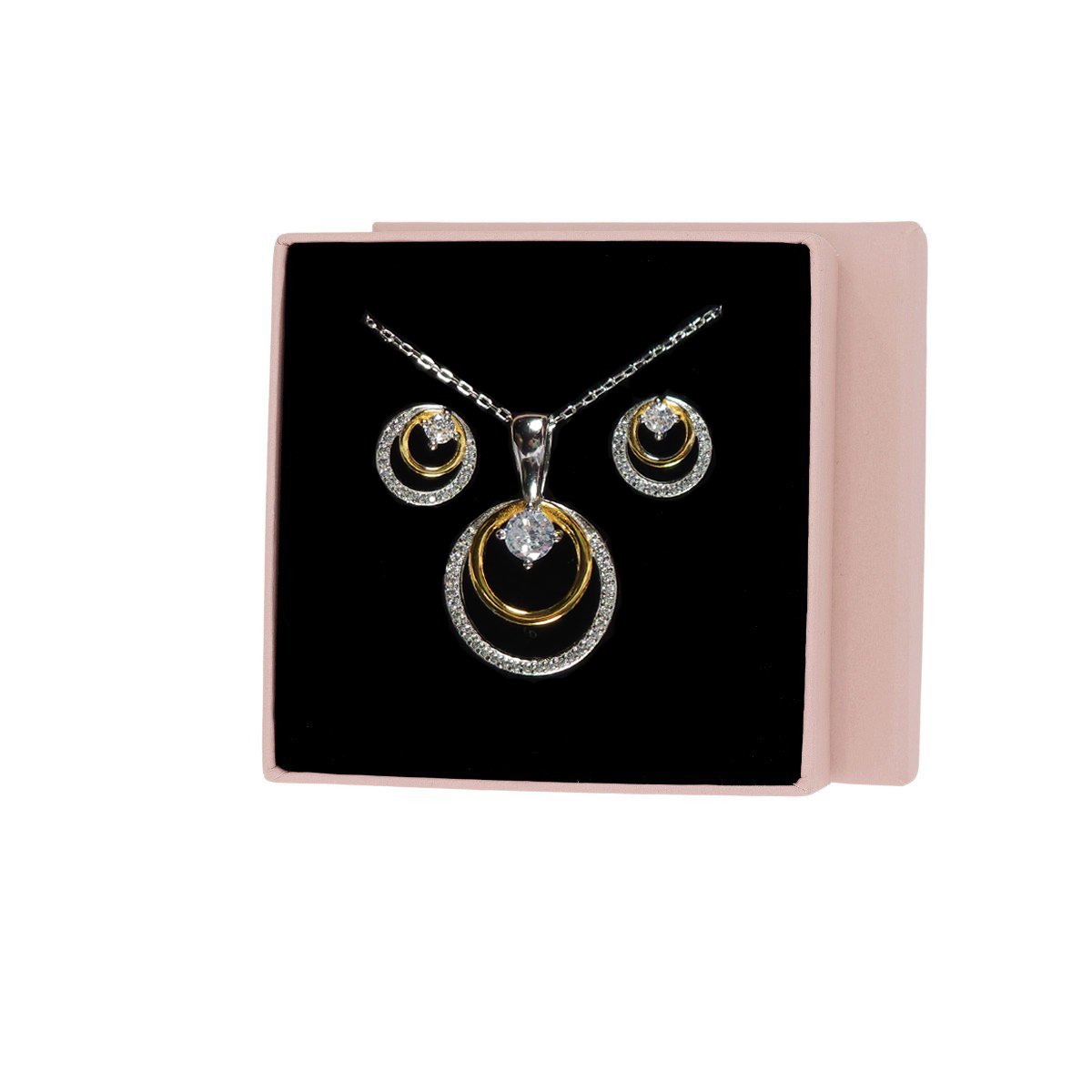 Komplet biżuterii pozłacanej 925 – naszyjnik + kolczyki z pozłacanym kołem i cyrkoniami