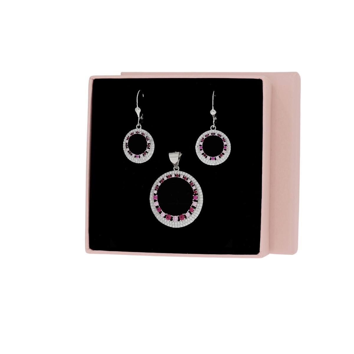 Komplet biżuterii srebrnej 925 – kolczyki + zawieszka z kolorowymi cyrkoniami Kolor - Różowy