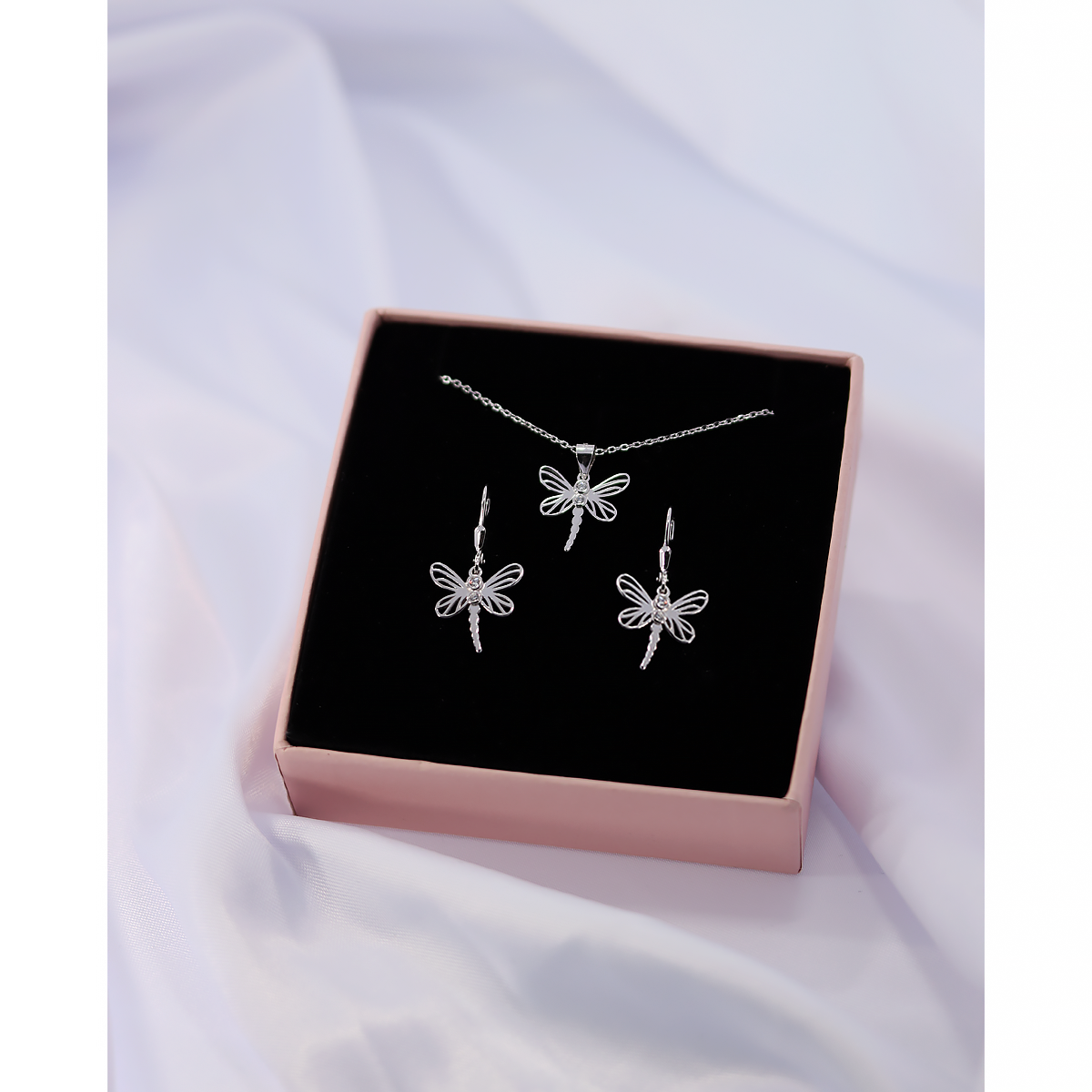 Komplet biżuterii srebrnej 925 – naszyjnik + kolczyki - ważka z cyrkoniami