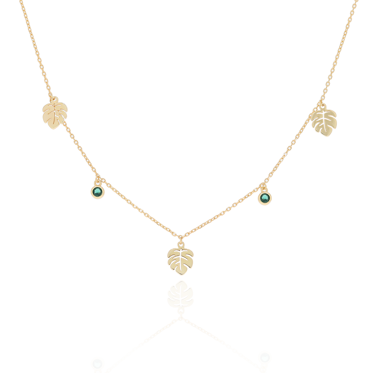 Pozłacany naszyjnik z motywem liścia monstery z zielonymi cyrkoniami to wyjątkowa propozycja dla osób, które kochają biżuterię inspirowaną naturą. Precyzyjne wykonanie i lekka forma sprawiają, że naszyjnik doskonale sprawdza się zarówno na co dzień, jak i jako elegancki dodatek do letnich stylizacji. Stworzy idealny zestaw z bransoletką- również dostępną w naszym sklepie.