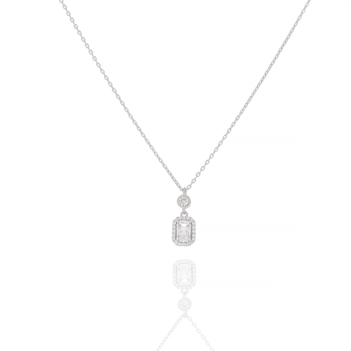 Naszyjnik celebrytka srebrna 925 prostokąt z białymi cyrkoniami